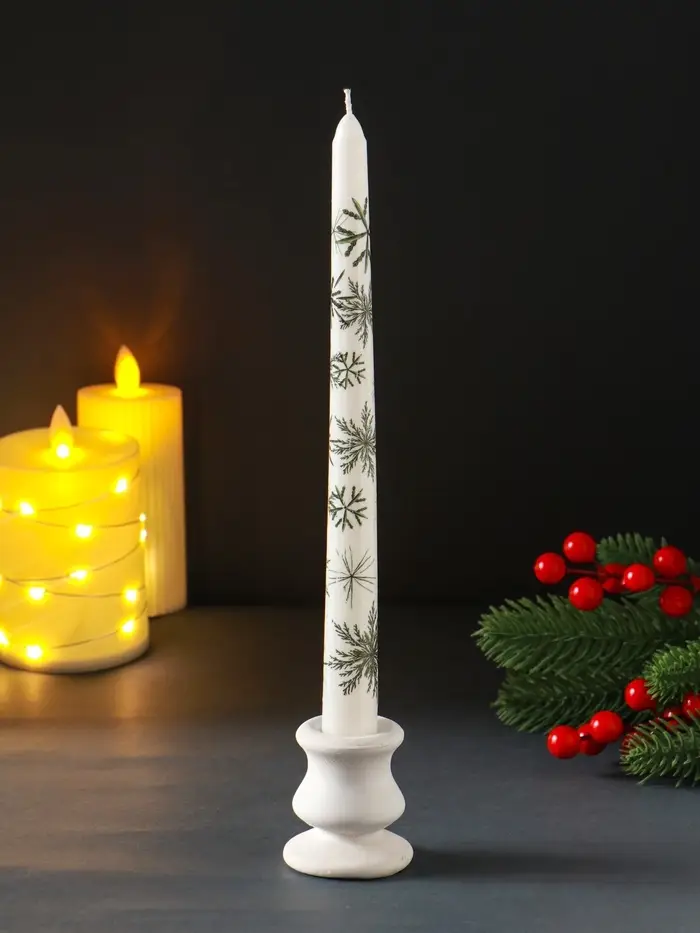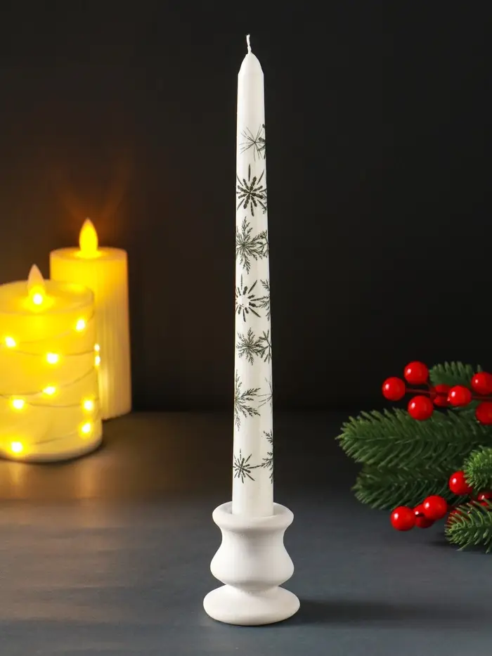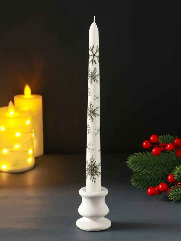 Свеча античная "Снежинки" 255х22 мм, с декором