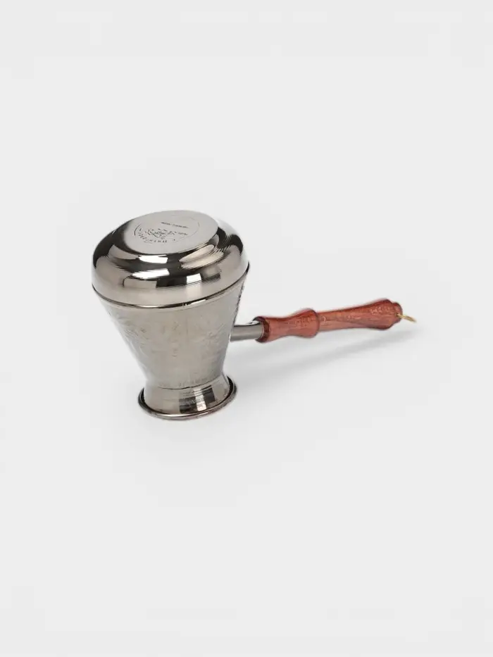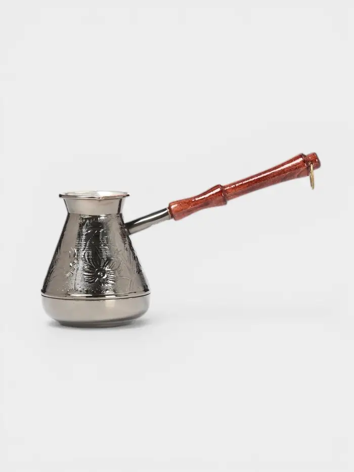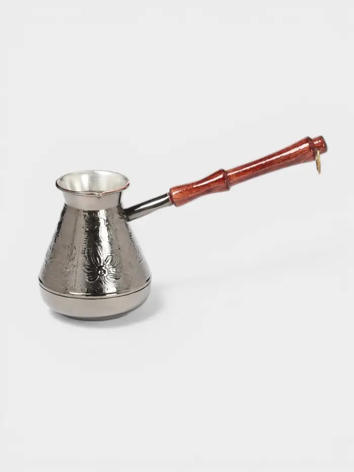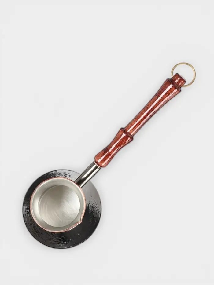 - Качественные материалы: турка изготовлена из меди и имеет деревянную ручку, что обеспечивает удобство в использовании.