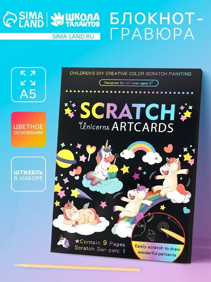 Гравюра блокнот "Единороги", 9 листов, штихель