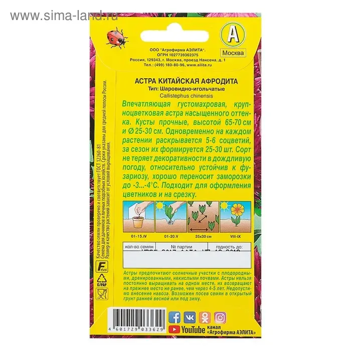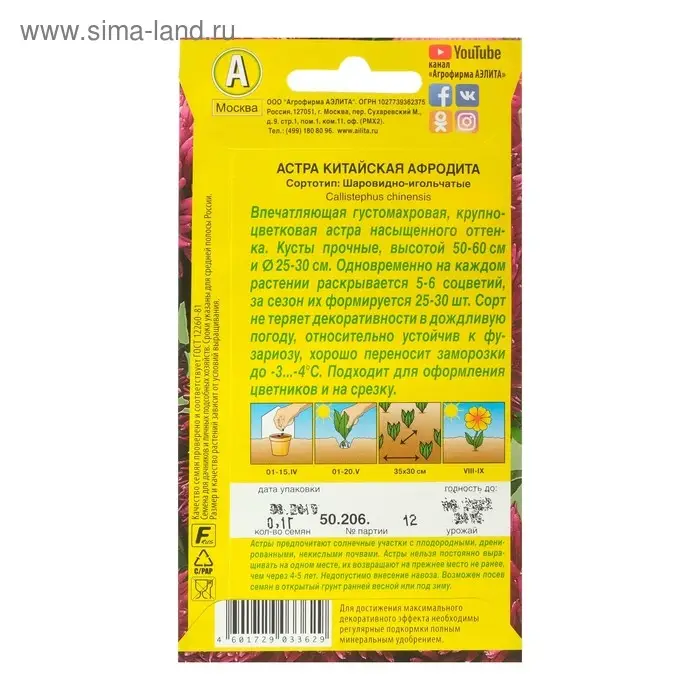 Семена цветов Астра "Седая Дама", красная, карликовая, Сем. Алт, ц/п, 0,1 г