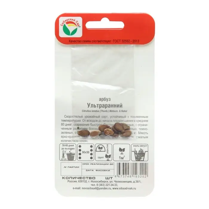 Семена Арбуз "Уральский Скороспел", F1, набор 5 шт