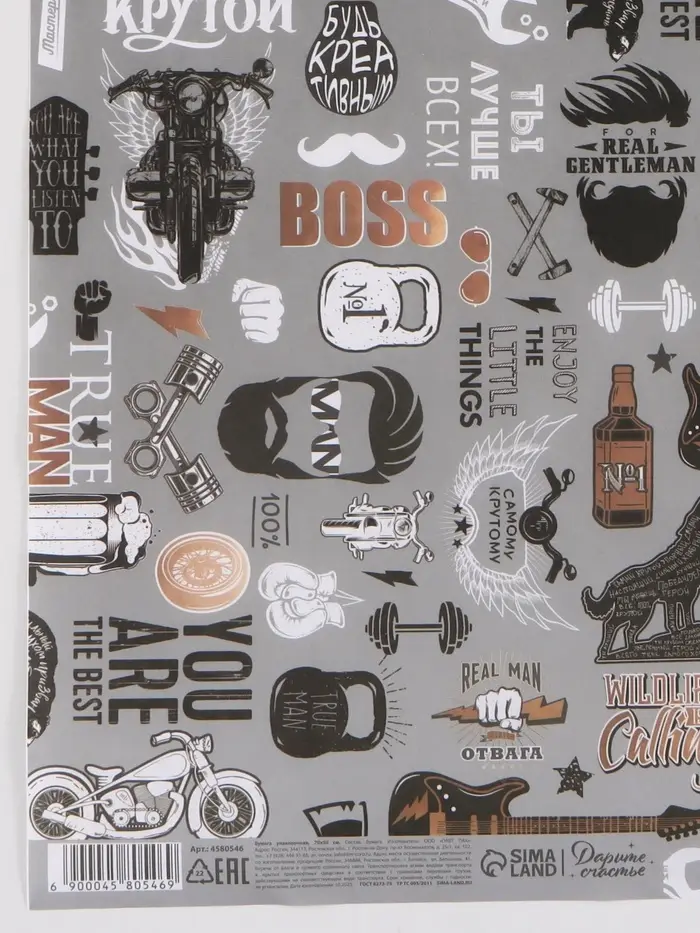 Бумага упаковочная крафт «Для него», 50×70 см