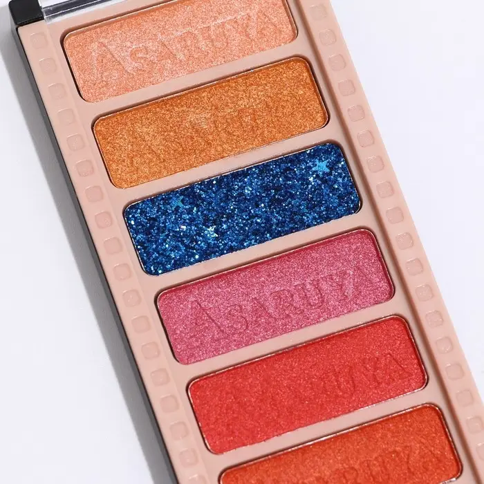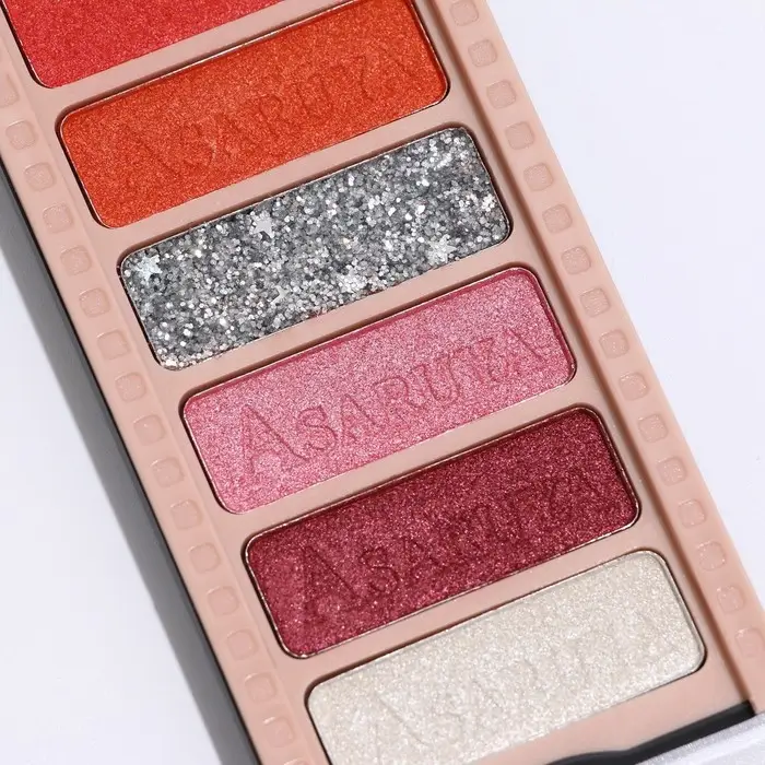 Палетка теней имеет удобную форму и хороший выбор цветов, в том числе блестящих. Тени хорошо пигментированы, не пылят, не скатываются, отлично тушуются и наносятся на веки.