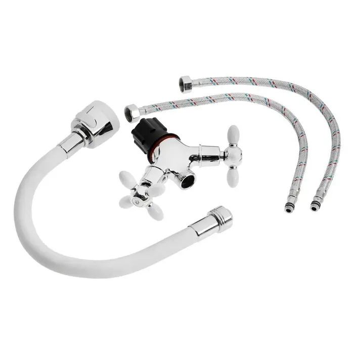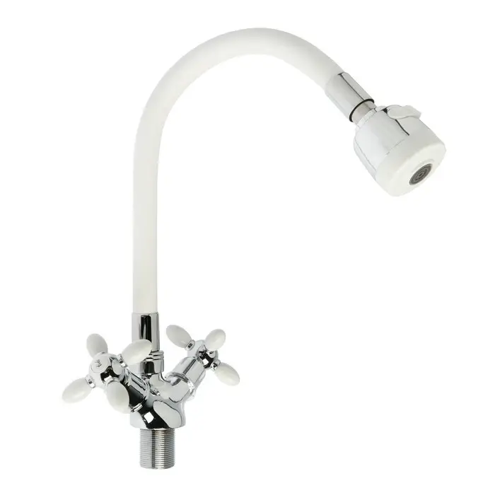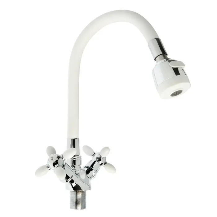 Смеситель для кухни ZEIN ZC2032, гибкий силиконовый излив,кран-букса латунь 1/2", белый/хром