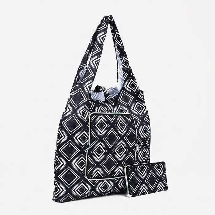 Сумка хозяйственная на кнопке, складная, цвет чёрный