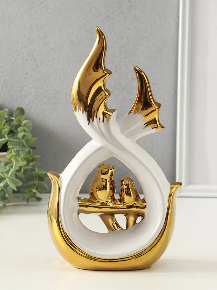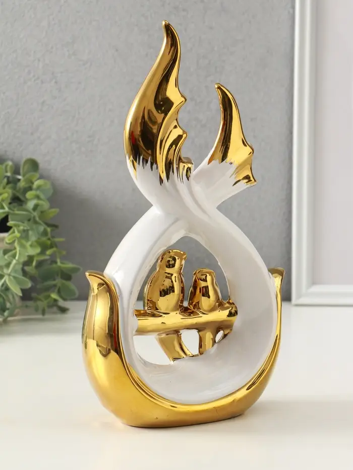 Сувенир керамика "Две птички на ветке" белый с золотом 7х15,5х29,5 см