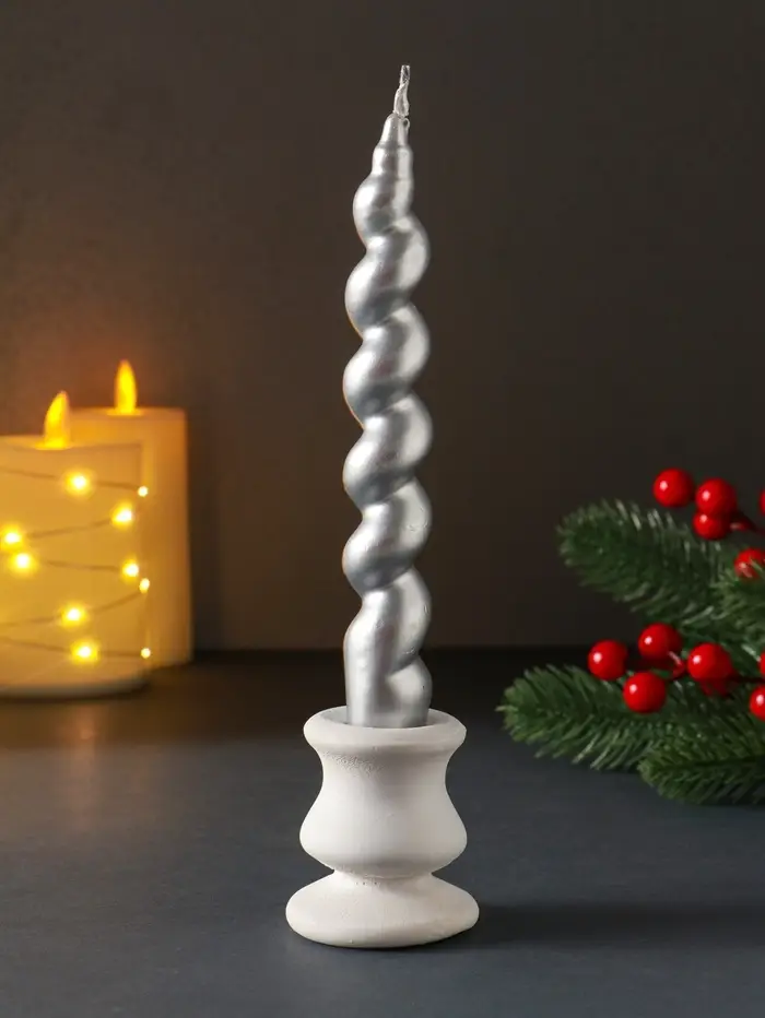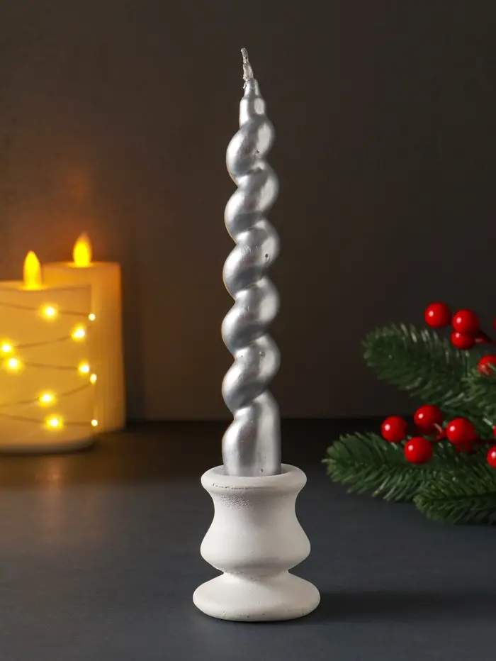 Свеча витая "LUXURY" 25*180 мм, лакированная, серебро