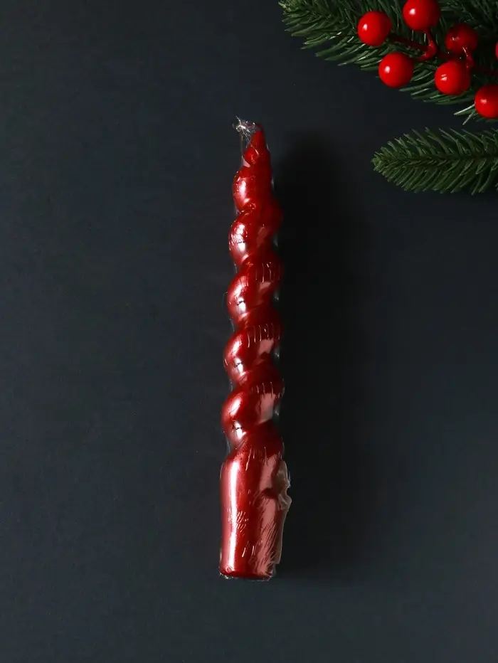 Свеча витая LUXURY, 25×170 мм, лакированная, красная