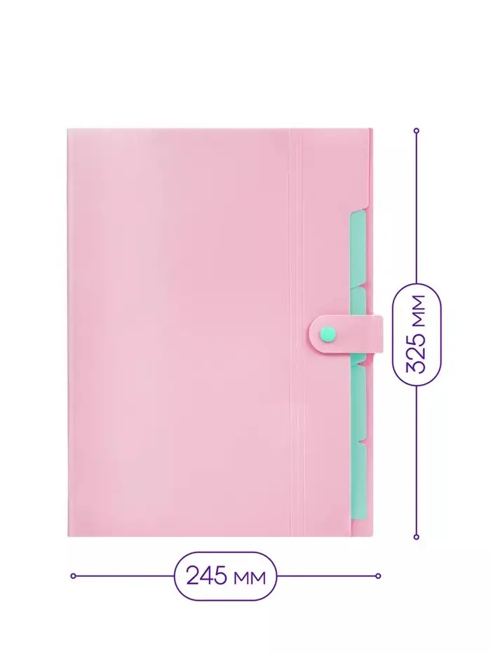 Папка пластиковая на кнопке с отделениями Calligrata формата А4. Обложка матовая, фактура «песок». Цвет обложки - розовый. Пять внутренних отделений для удобного хранения и организации документов. Каждое отделение с индексным полем, позволяет сортировать документы по темам или алфавиту. Надежная застежка-кнопка. Контрастный мятный цвет отделений. Быстрый доступ к содержимому. Изготовлена из высококачественного полипропилена с матовой текстурой. Предназначена для хранения и транспортировки документов. Толщина обложки 600мкм. Вмещает до 200 листов. Размер 245*325*10. Упакована в индивидуальный прозрачный пакет по форме.