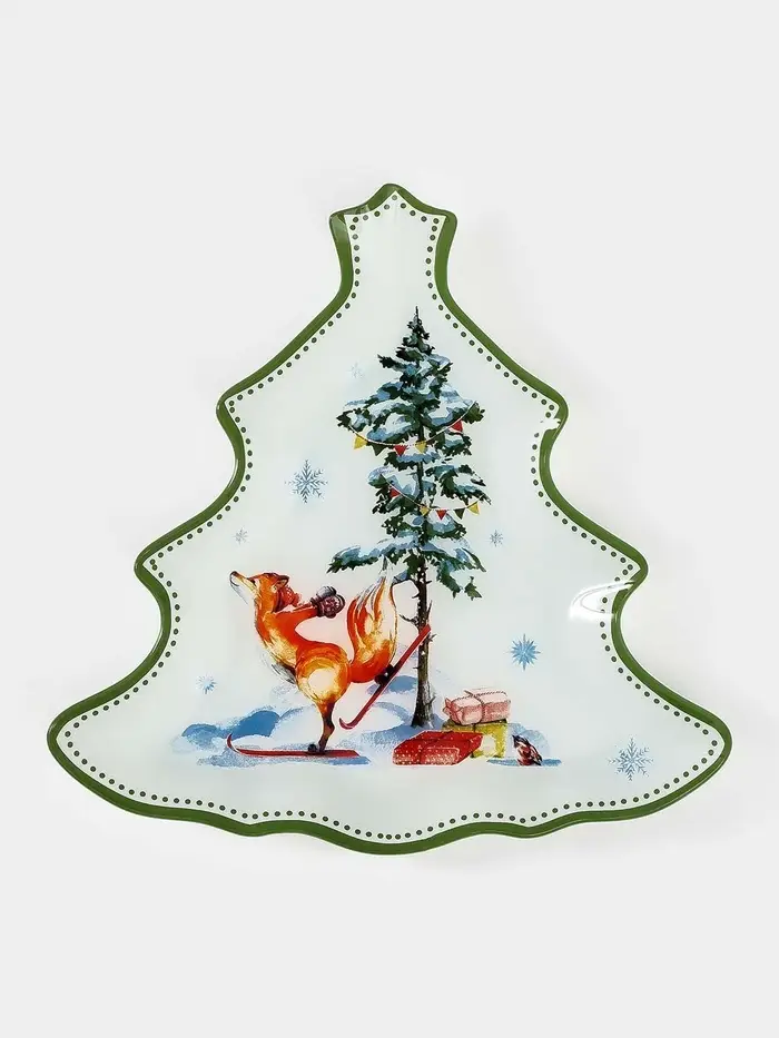 Блюдо сервировочное ёлочка "Зверьки в лесу" 24,5х24,7х2 см