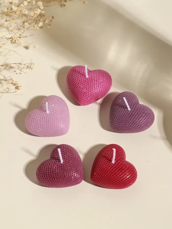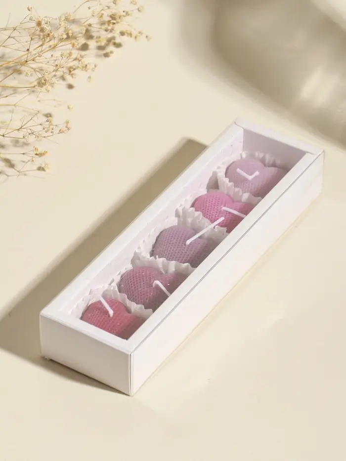 Набор свечей декоративных "Вафельные сердца" 5 шт 4,5х4,5 розово-фиолетовые 6,5х22,5х3,5 см 109135