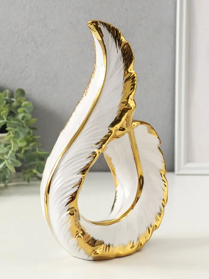 Сувенир керамика "Изогнутое пёрышко" белый с золотом 9х17,5х29,5 см