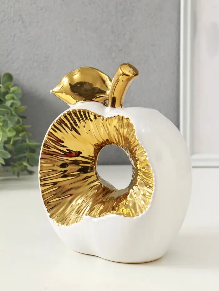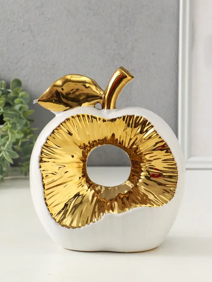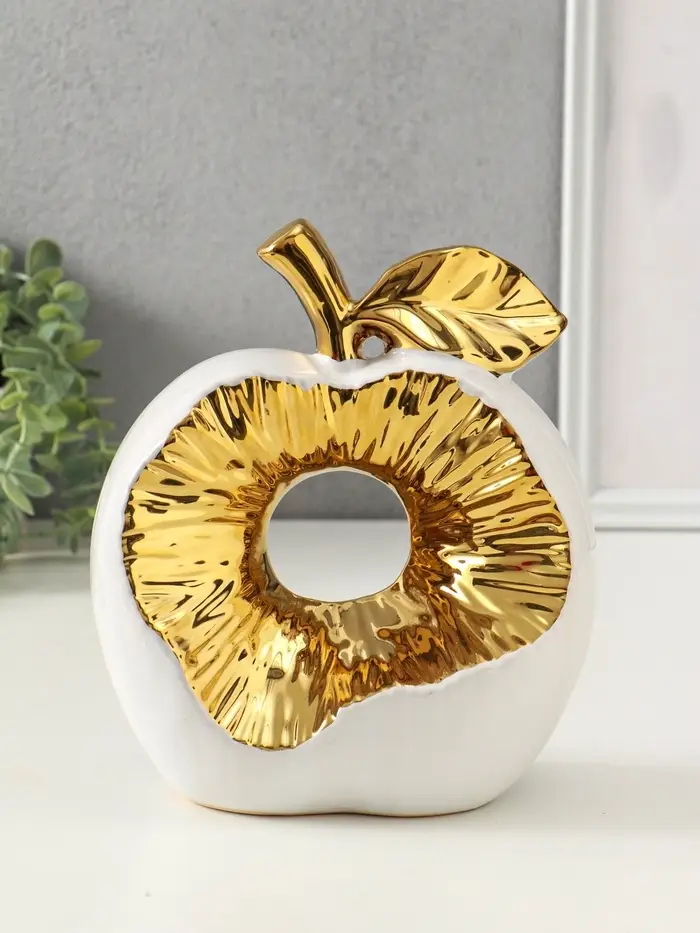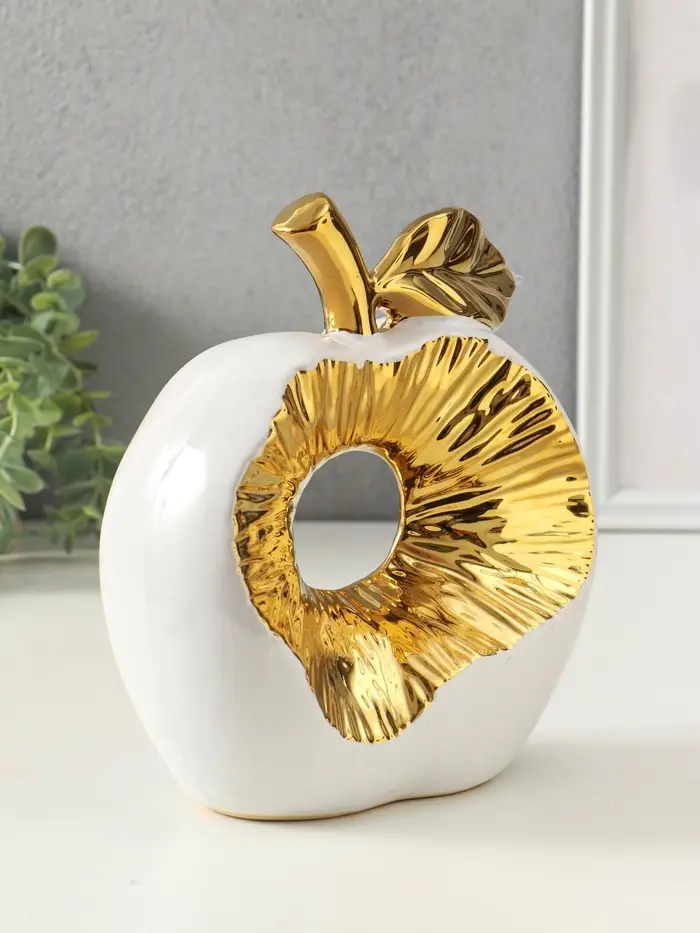 Сувенир керамика "Срез яблока" белый с золотом 11х18х22 см