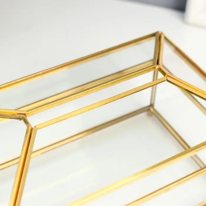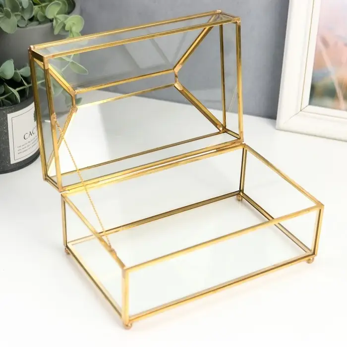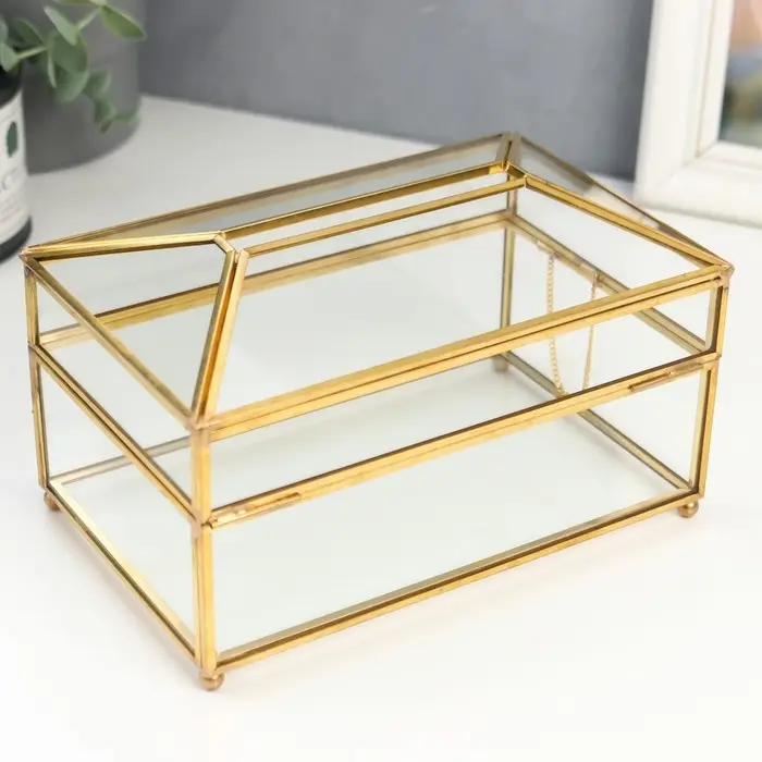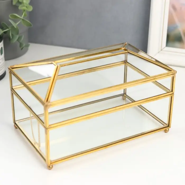 Шкатулка-салфетница «Золотые грани», стекло, 11.8×10.3×19.2 см