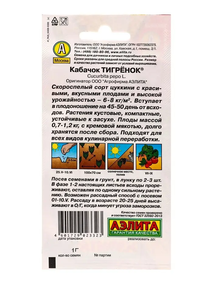 Семена Кабачок цуккини Тигренок , Ц/П,1 г