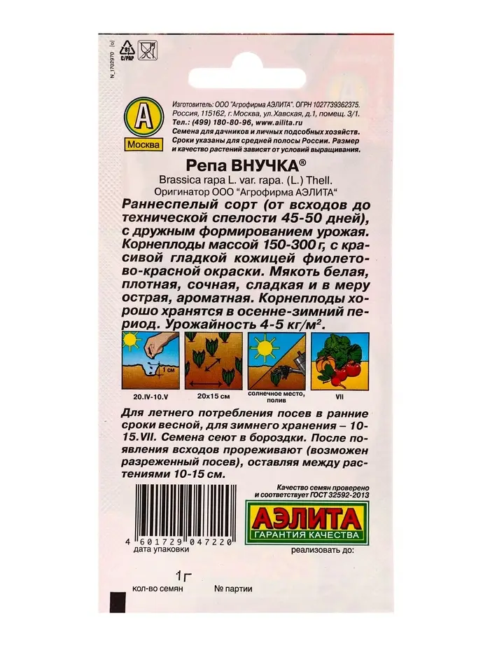 Семена Репа «Внучка», 1 г, «Агрофирма АЭЛИТА»