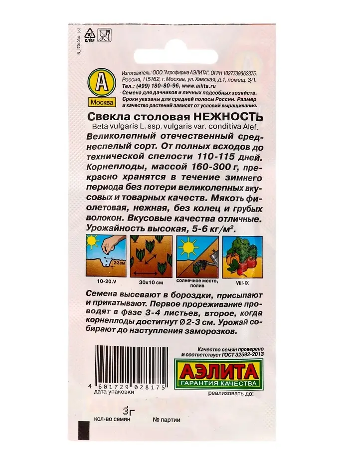 Семена Свекла столовая Нежность, Ц/П,3 г