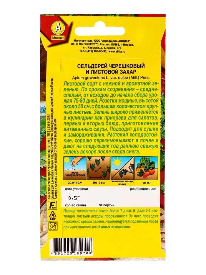 Семена С.ьдерей листовой Захар, Ц/П,0,5 г
