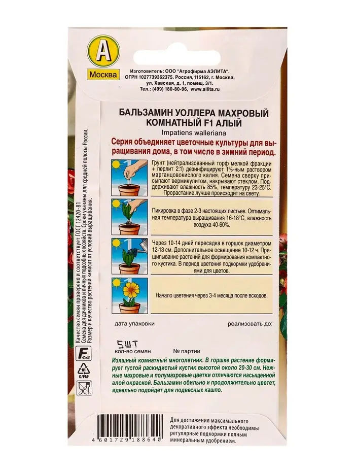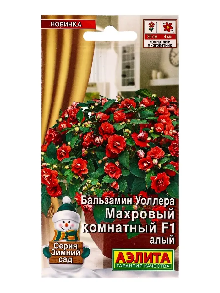 Семена цветов Бальзамин Махровый комнатный F1 алый Зимний сад, Ц/П,5 шт.