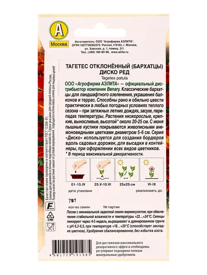Семена цветов Бархатцы Диско ред отклоненные Спецсерия Benary, Ц/П,7 шт.