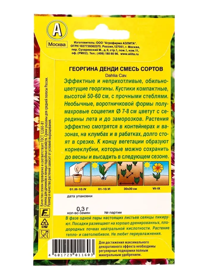 Семена цветов Георгина Денди, смесь сортов , Ц/П,0,3 г