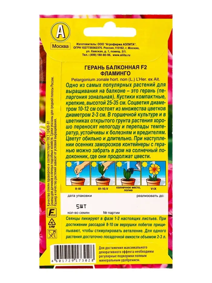 Семена цветов Герань Балконная фламинго F2 Мн Цветущий балкон, Ц/П,5 шт.