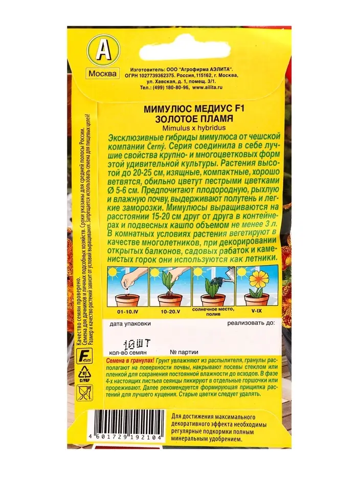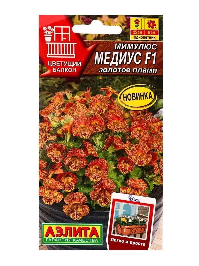 Семена цветов Мимулюс Медиус F1 золотое пламя (драже) С. Cerny Цветущий балкон, Ц/П,10 шт.