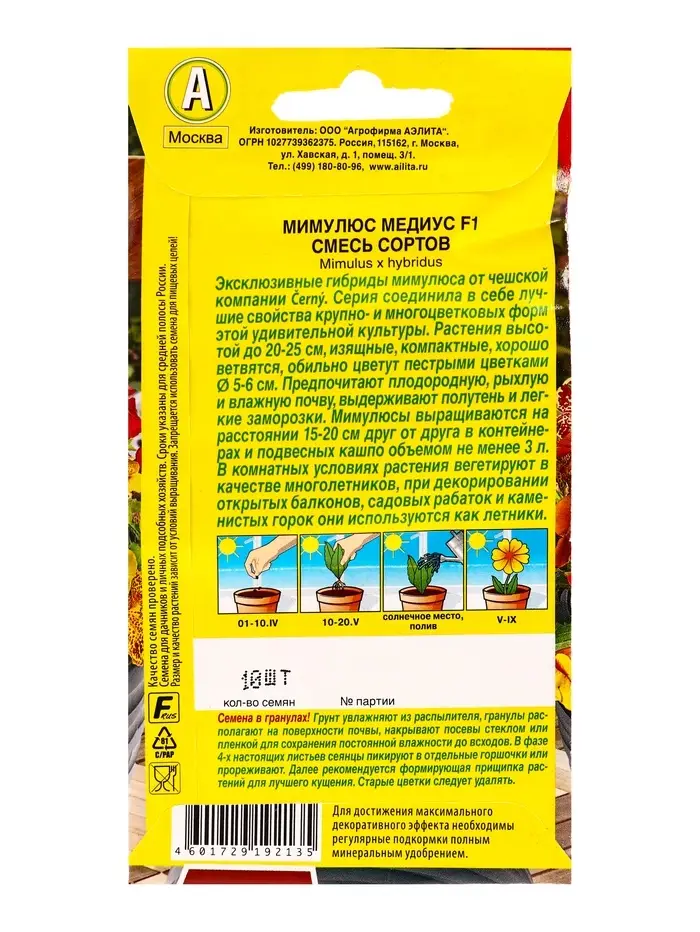 Семена цветов Мимулюс Медиус F1, смесь сортов (драже) С. Cerny Цветущий балкон, Ц/П,10 шт.