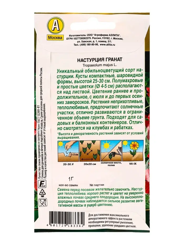 Семена цветов Настурция Гранат Золотая серия, Ц/П,1 г