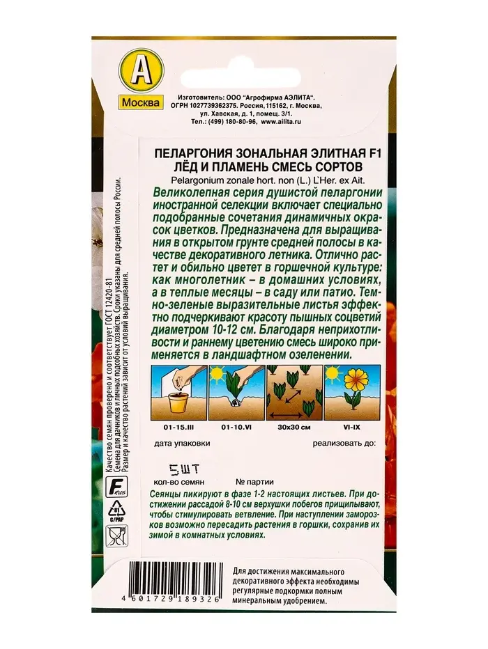 Семена цветов Пеларгония Элитная F1 лёд и пламень, смесь сортов Мн Золотая серия, Ц/П,5 шт.