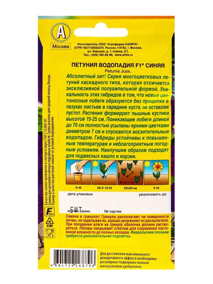 Семена цветов Петуния ВОДОПАДИЯ F1 синяя (драже в пробирке), Ц/П,5 шт.