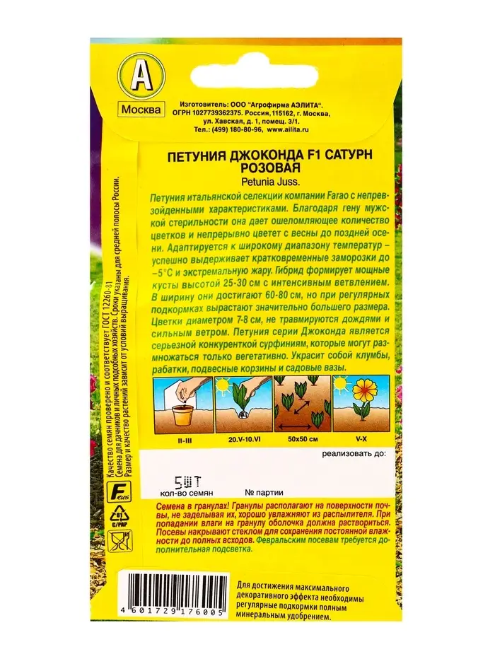 Семена цветов Петуния Джоконда F1 сатурн розовая (драже в пробирке) С. Farao, Ц/П,5 шт.