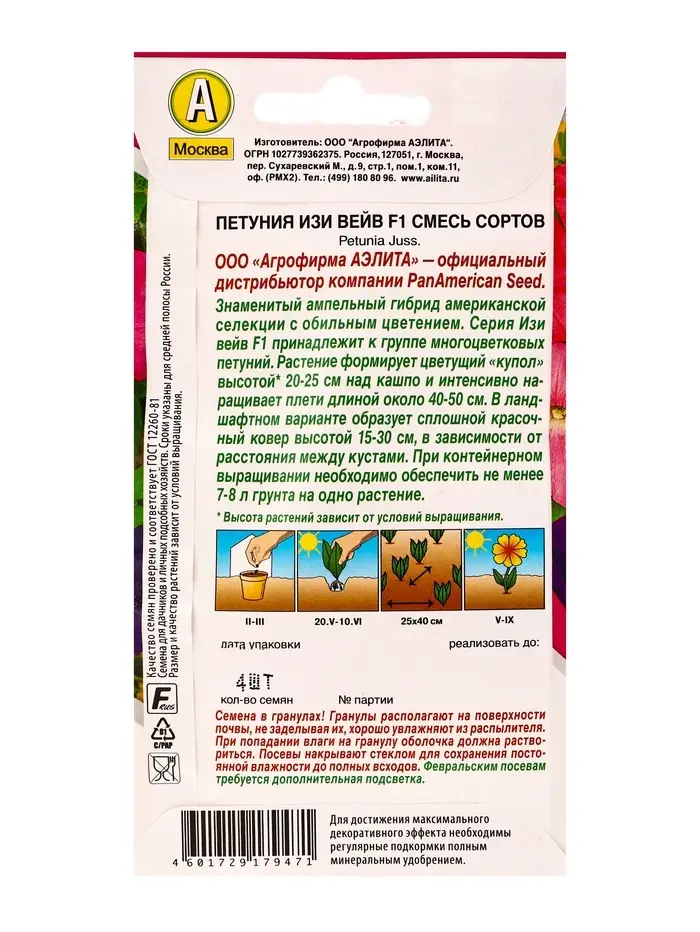Семена цветов Петуния Изи вейв F1, смесь сортов (драже) PanAmerican Wave, Ц/П,4 шт.