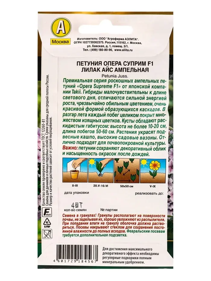 Семена цветов Петуния Опера суприм F1 лилак айс ампельная (драже) С. Takii Seed , Ц/П,4 шт. 1094578