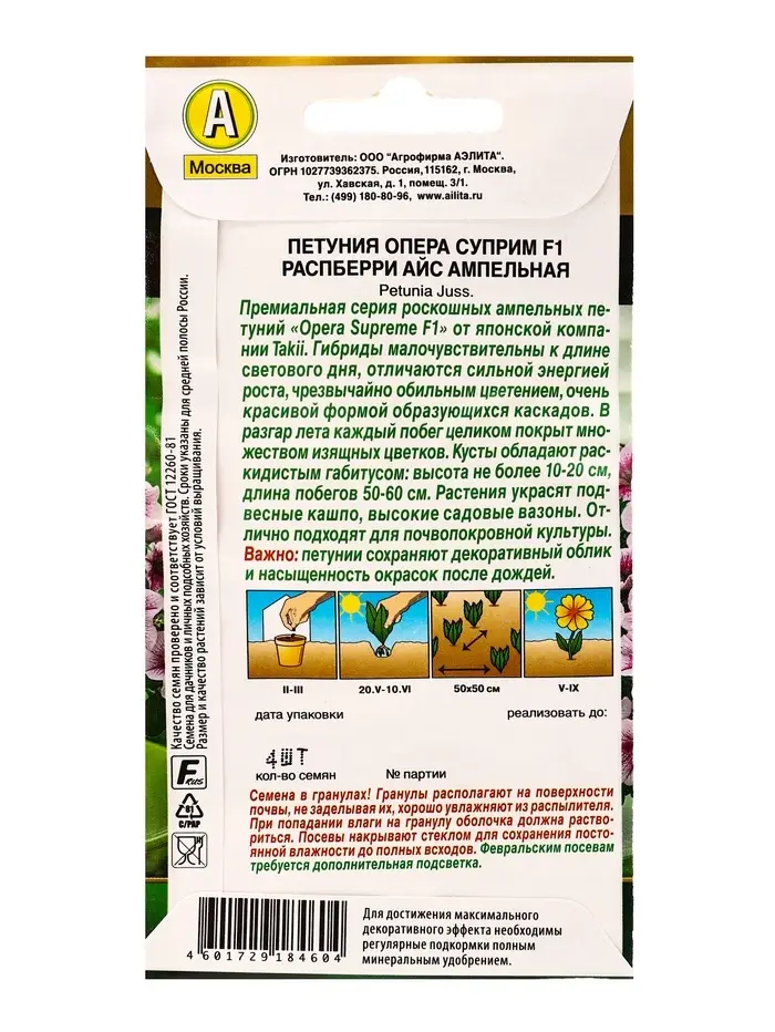 Семена цветов Петуния Опера суприм F1 распберри айс ампельная (драже) С. Takii Seed , Ц/П,4 шт. 1094