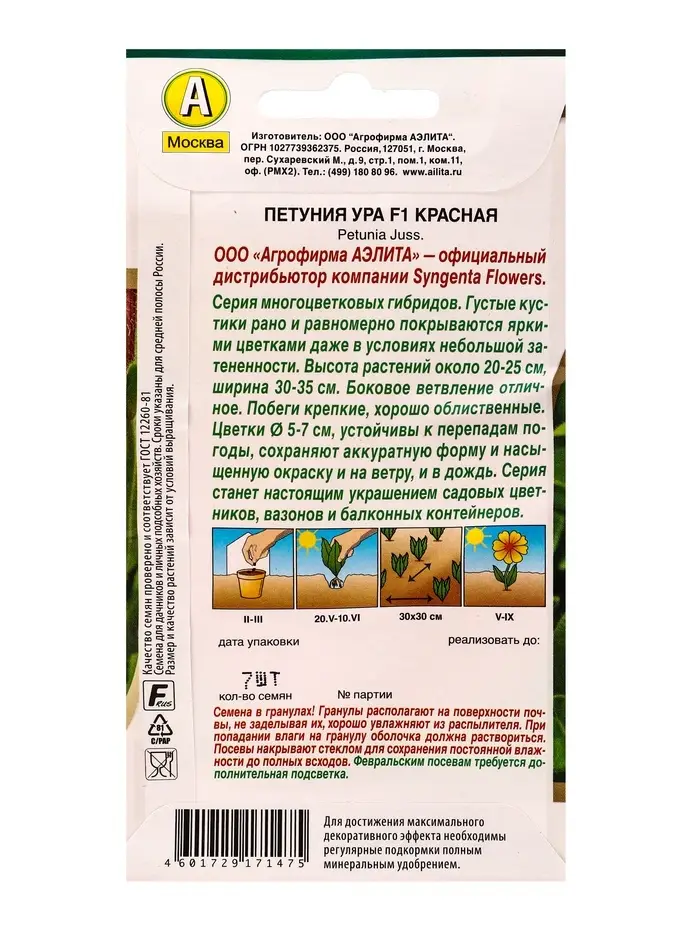 Семена цветов Петуния Ура F1 красная (драже в пробирке) Спецсерия Syngenta, Ц/П,7 шт.