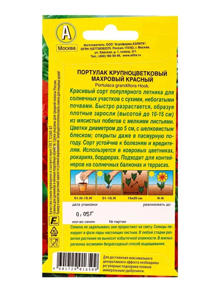 Семена цветов Портулак махровый красный , Ц/П,0,05 г
