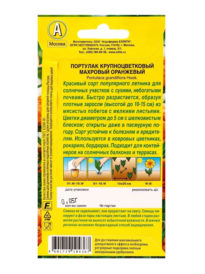 Семена цветов Портулак махровый оранжевый , Ц/П,0,05 г