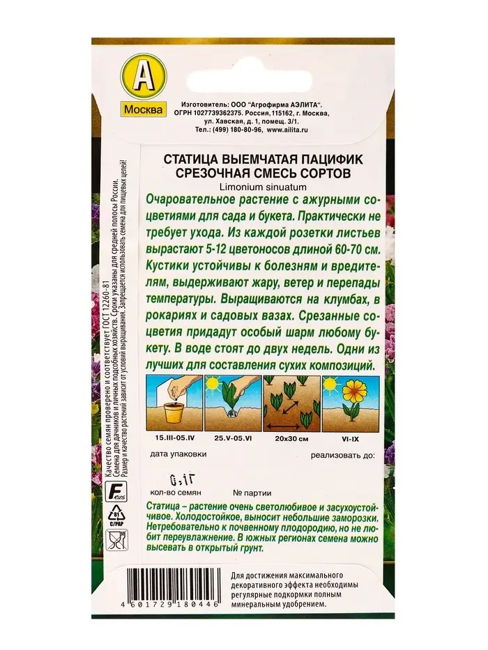 Семена цветов Статица Пацифик срезочная, смесь сортов Золотая серия, Ц/П,0,1 г