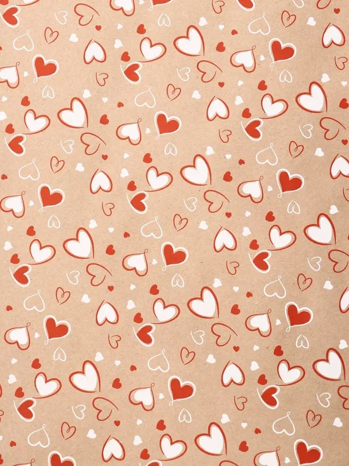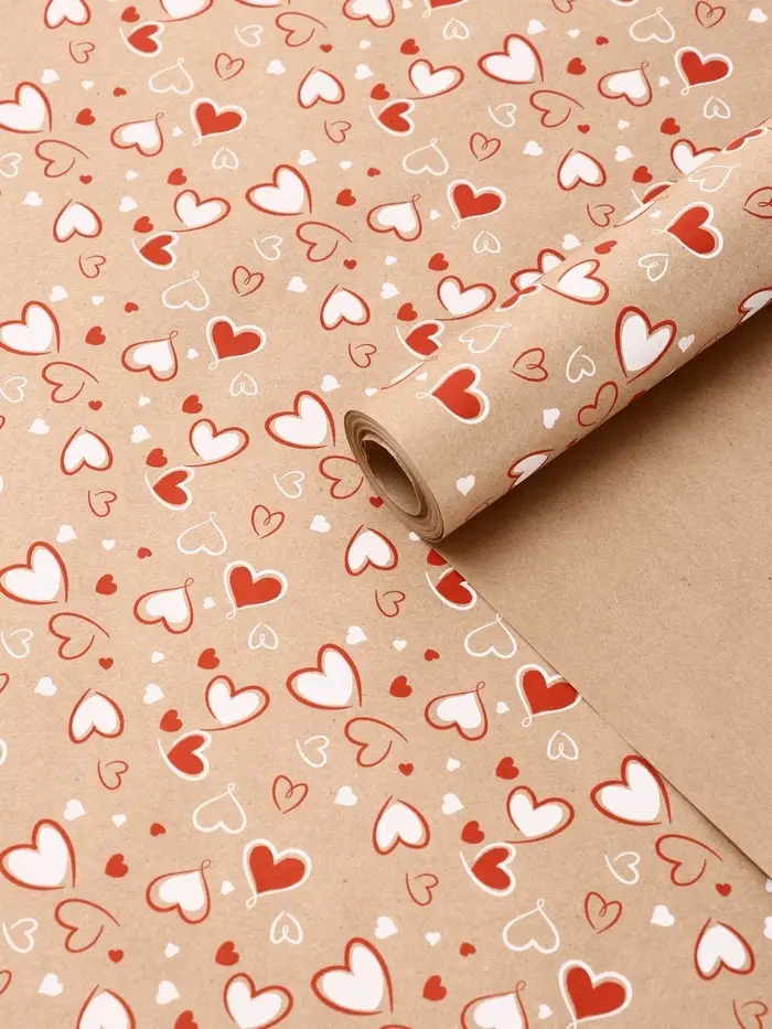 Крафт бумага "Сердечки 2" красный/белый цв. на коричневом фоне 0,72 х 10 ±5% м, 60 гр