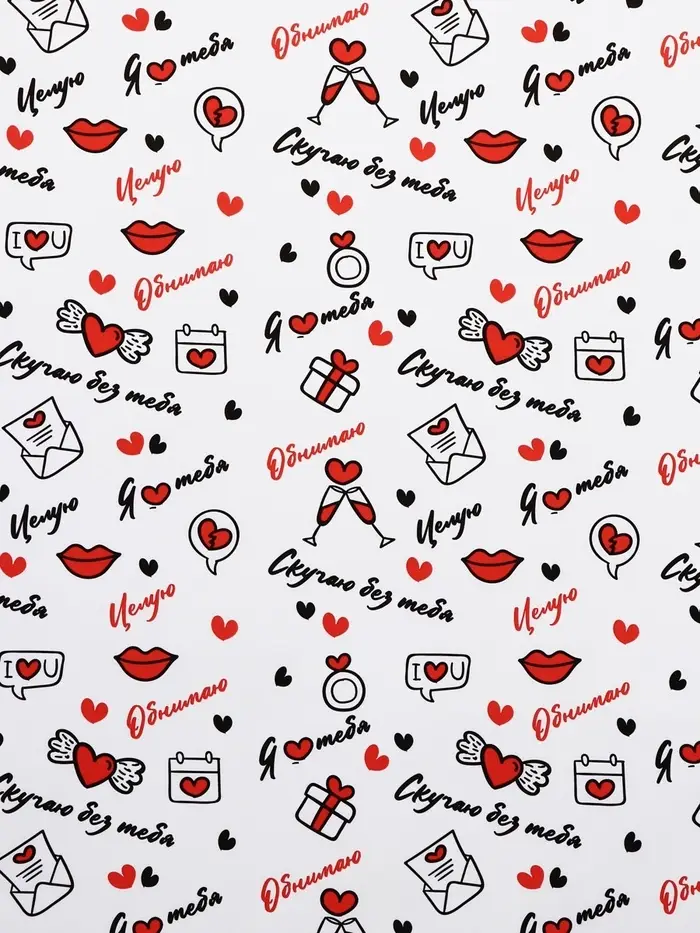 Крафт бумага "Я люблю тебя" черный/красный цв. на белом фоне 0,68 х 10 ±5% м, 60 гр