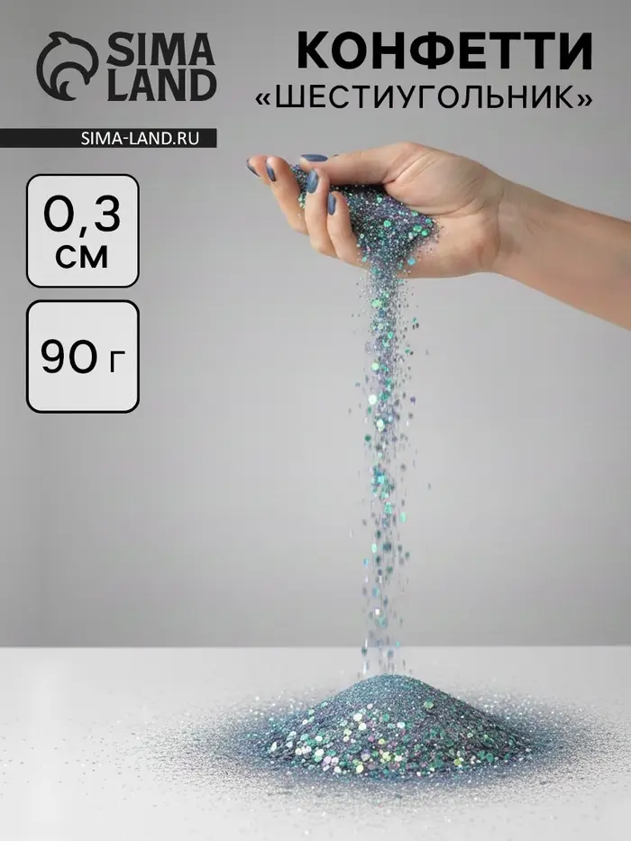 Конфетти «Шестиугольники» голубые, перламутр, 0.3 см, 90 г