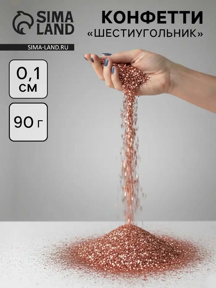 Конфетти «Шестиугольники» розовое золото, металлик, 0.1 см, 90 г