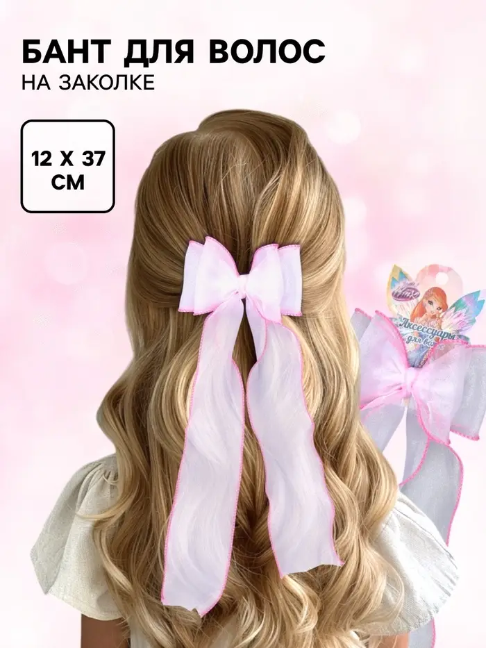 Бант для волос на заколке «Винкс» — прозрачный с нежной розовой каёмкой— воздушный, сияющий и по-феерически волшебный акцент для юной феи! Полупрозрач. Надёжная заколка бережно фиксирует пряди, не повреждая даже самые тонкие волосы. Идеален для утренников, праздников, фотосессий или повседневного образа. Пусть каждая причёска напоминает: истинная магия рождается из дружбы, мечтаний и веры в себя!