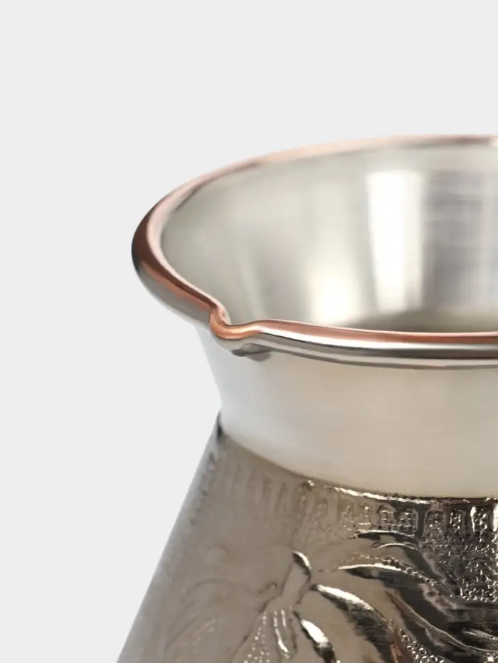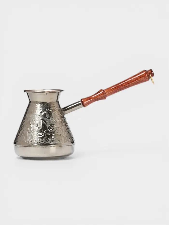 - Стильный дизайн: серебристый цвет и изящный рисунок придают турке эстетическую привлекательность.