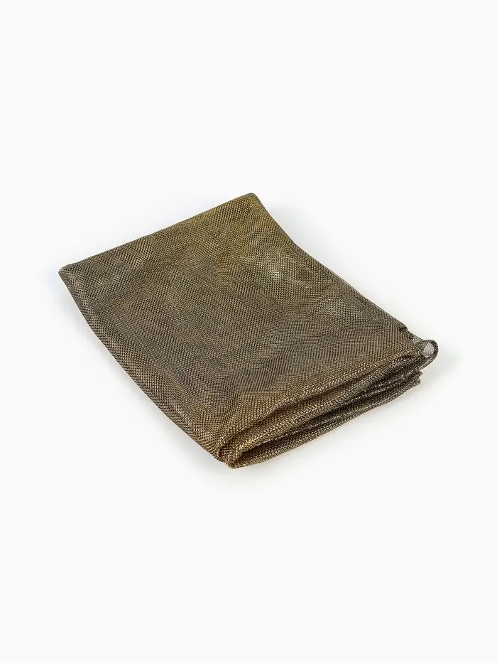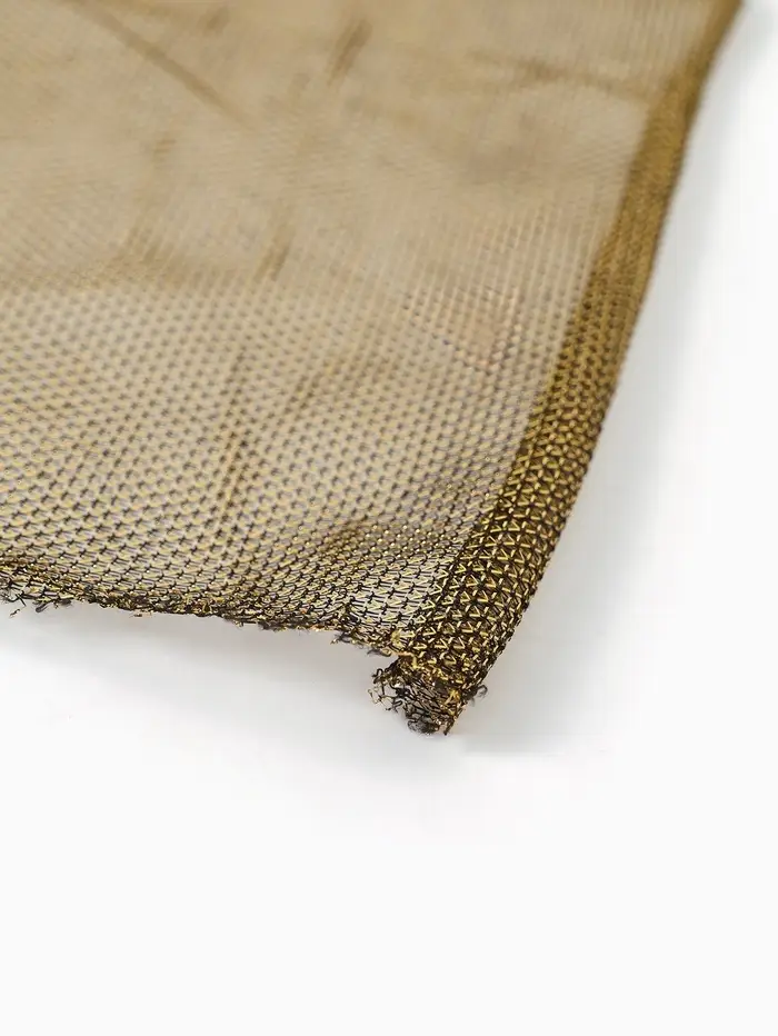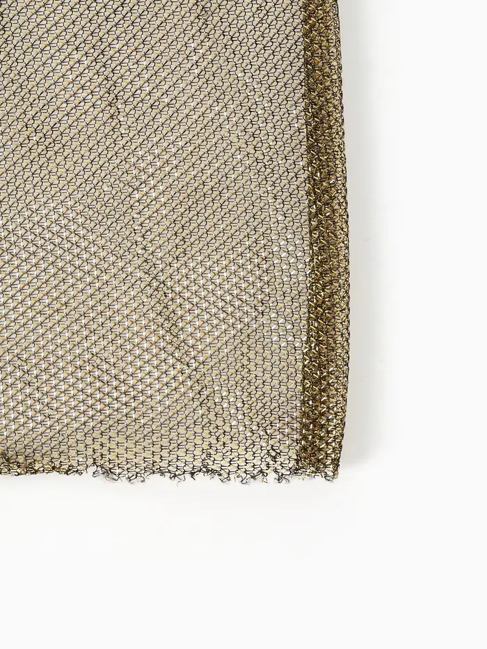Лоскут трикотаж сетка, мелкая кольчуга золото на черном 100*150см