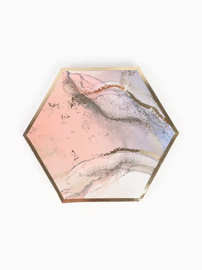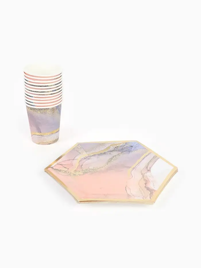 Набор посуды для праздника на 12 персон, мрамор розовый (тарелки 23 см, стакан 250 мл)