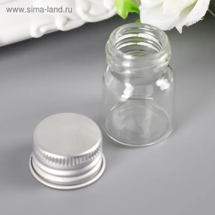 Декор для творчества стекло "Баночка с крышкой" серебро, 5,5 мл, 3х2,2х2,2 см