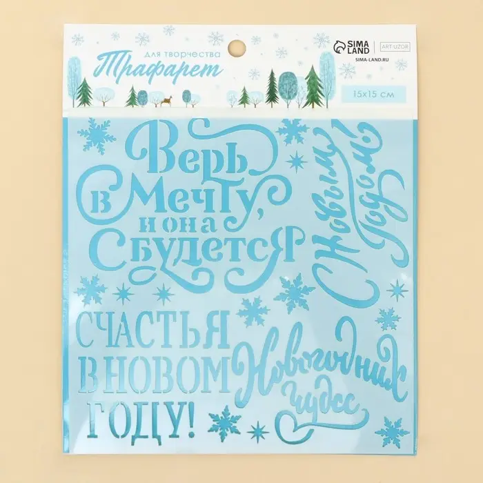 Трафарет для творчества «С Новым годом», 15 х 15 см, пластик