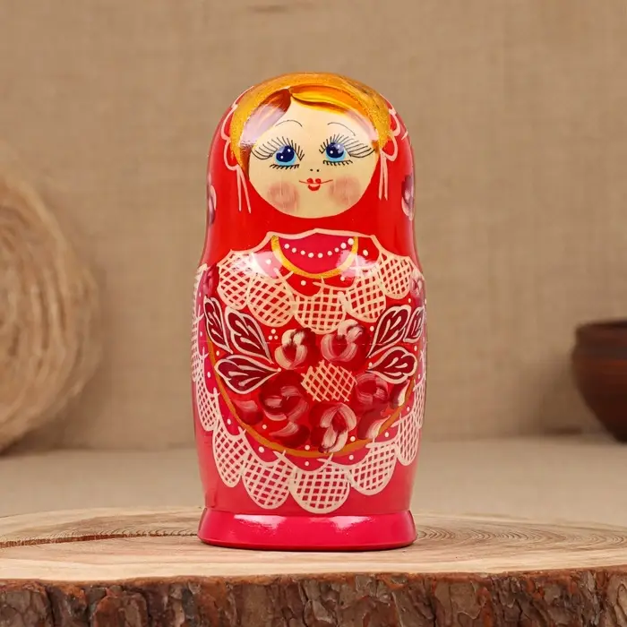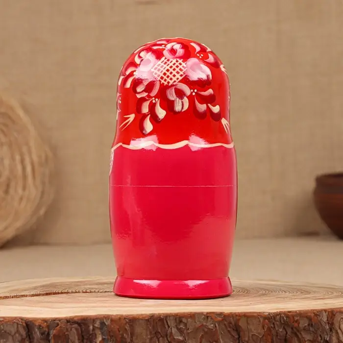 Матрёшка дерево «Надя», красно-розовое платье, 5-кукольная, 19 см